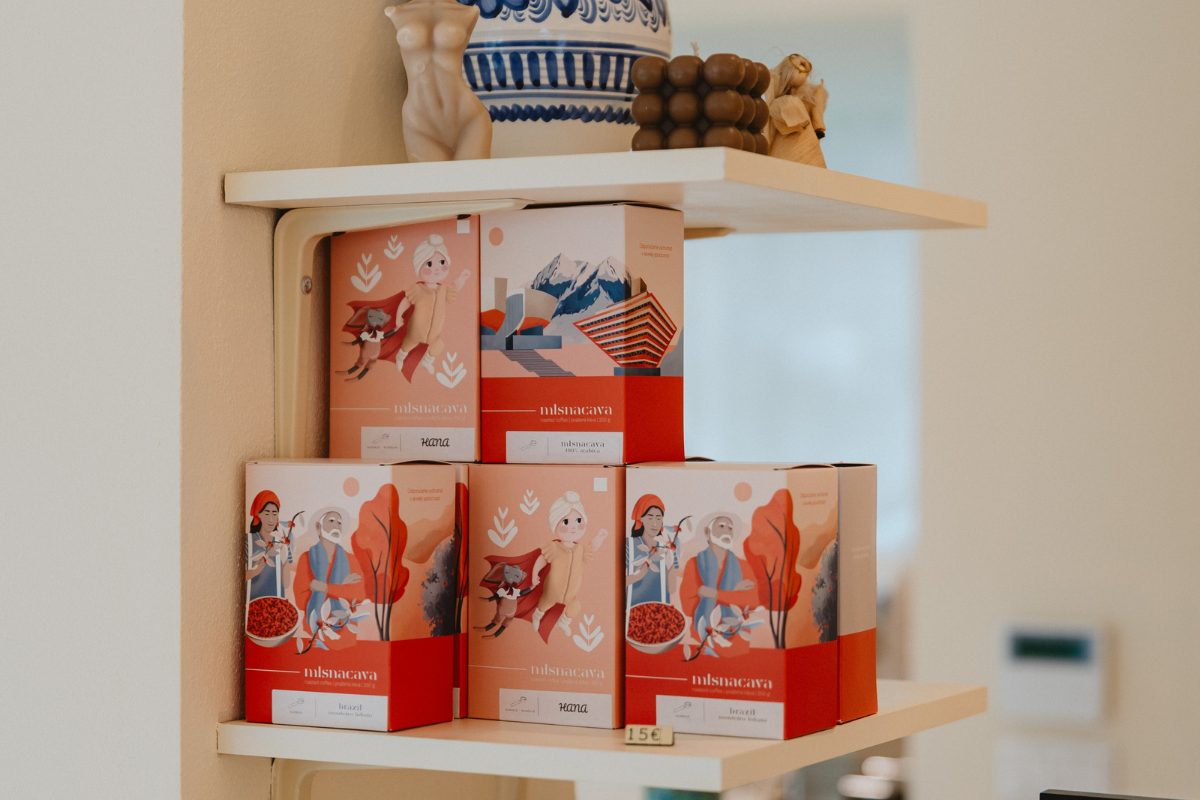 Súčasťou priestoru je aj kaviareň, kde si môžeš dať kvalitnú kávu, remeselný koláč alebo si len sadnúť a na chvíľu spomaliť. Nejde len o nákup. Ide o celý zážitok.